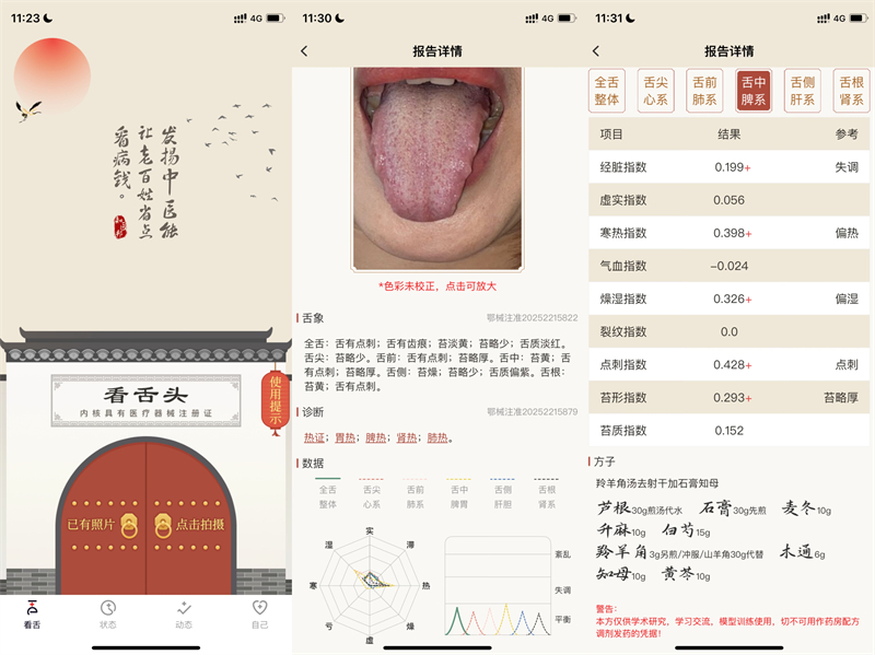 告别“大海捞针”式的资料查找,这款带证的“看舌头App”用硬核技术和专业逻辑,重新定义了普通人的舌诊体验。它不仅是一款工具,更是一座桥梁,让每个人都能轻松读懂身体信号,实现科学自主的健康管理。如果你也为自学看舌头发愁,为体质判断迷茫,不妨试试这款App。让AI为你拨开健康迷雾,用靠谱的舌诊分析为全家健康保驾护航——这才是AI时代该有的健康打开方式。